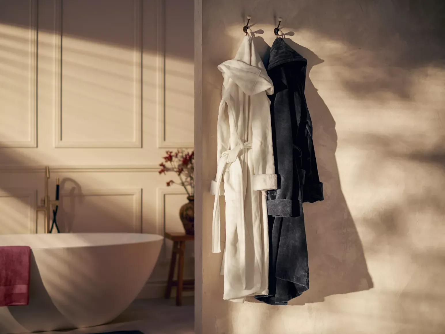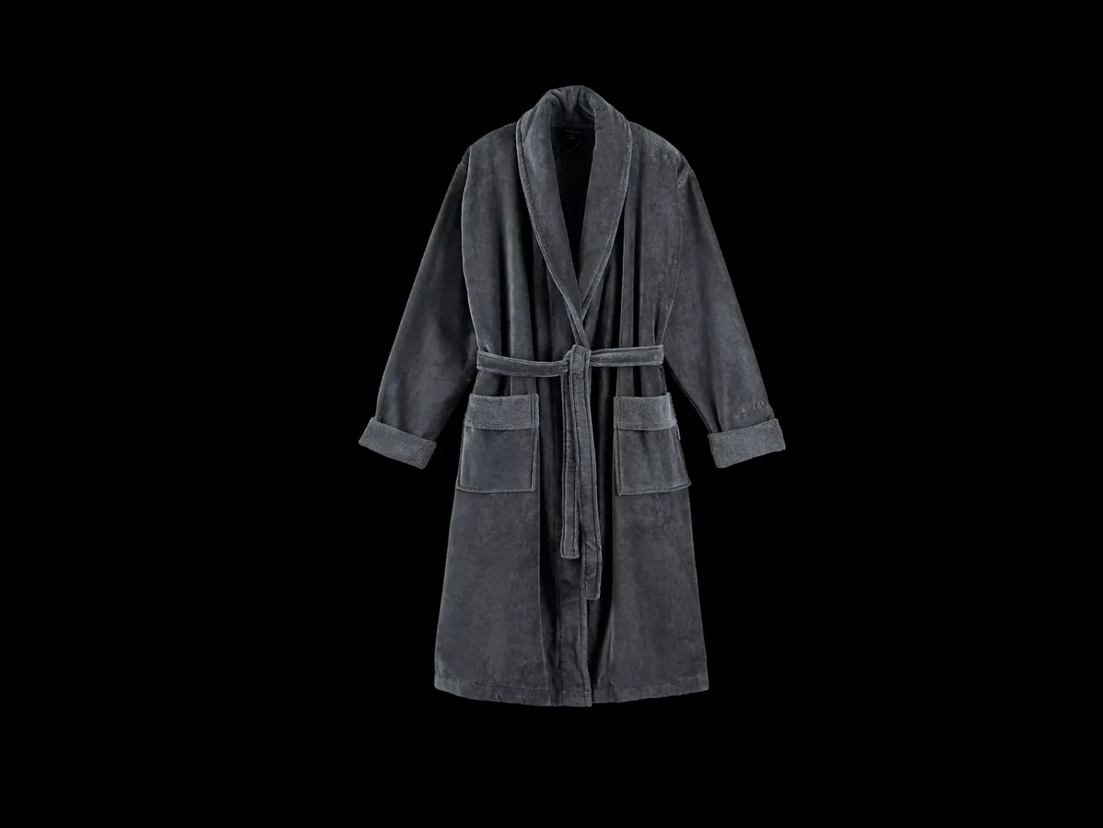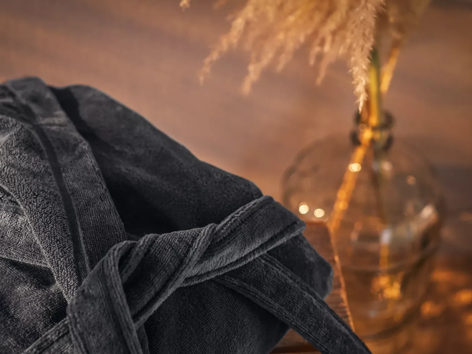 Elaborado en un algodón color gris oscuro increíblemente suave, este lujoso albornoz para hombre de la House of Rituals Collection es perfecto para envolverse después de un baño o para desconectar con estilo los fines de semana.