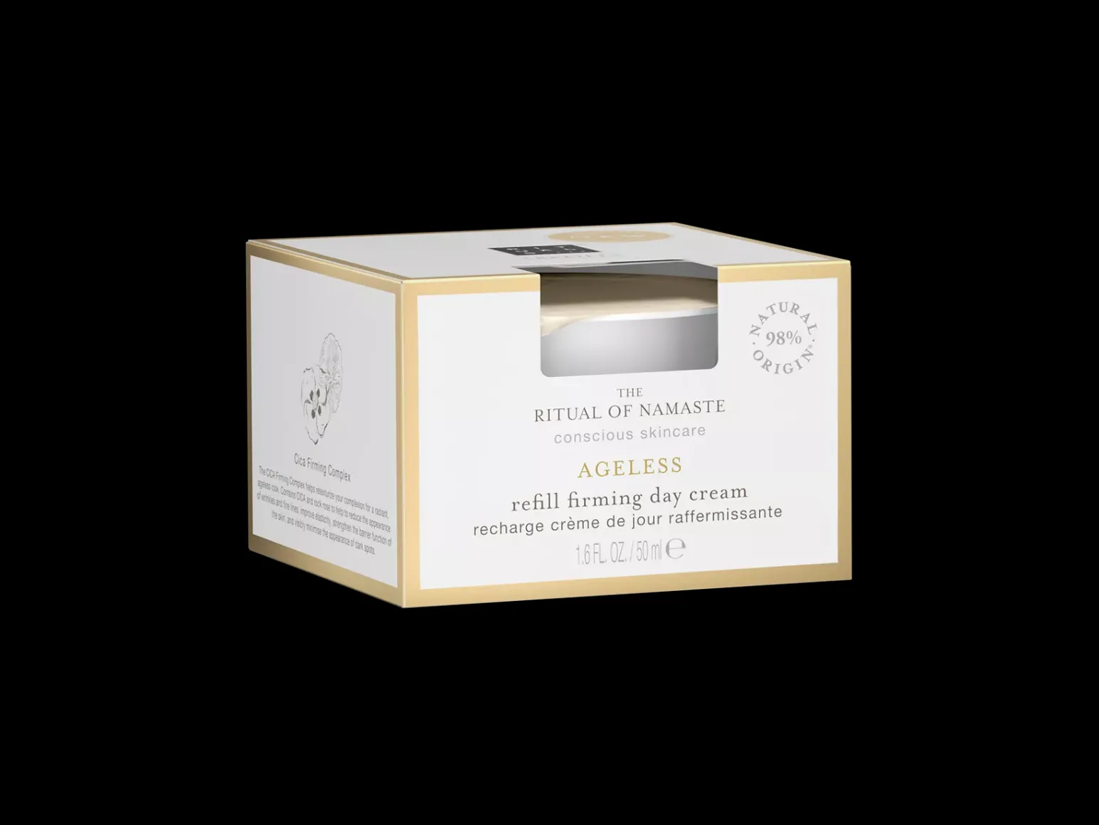 Respeta tanto tu piel del rostro como la naturaleza con esta recarga ecológica para la crema facial de día reafirmante. Esta lujosa crema facial antiarrugas hidratante de la línea Ageless de The Ritual of Namaste refuerza la firmeza y la elasticidad de la piel, y ayuda a reducir visiblemente la aparición de las arrugas y las líneas de expresión. Con complejo reafirmante CICA, su fórmula aporta a la piel del rostro propiedades rejuvenecedoras y antiedad y refuerza su función de barrera • 98 % de ingredientes de origen natural, 2 % creados en el laboratorio para garantizar la textura y estabilidad del producto. • propiedades rejuvenecedoras y antiedad • para todo tipo de pieles, incluida la sensible • testada dermatológicamente