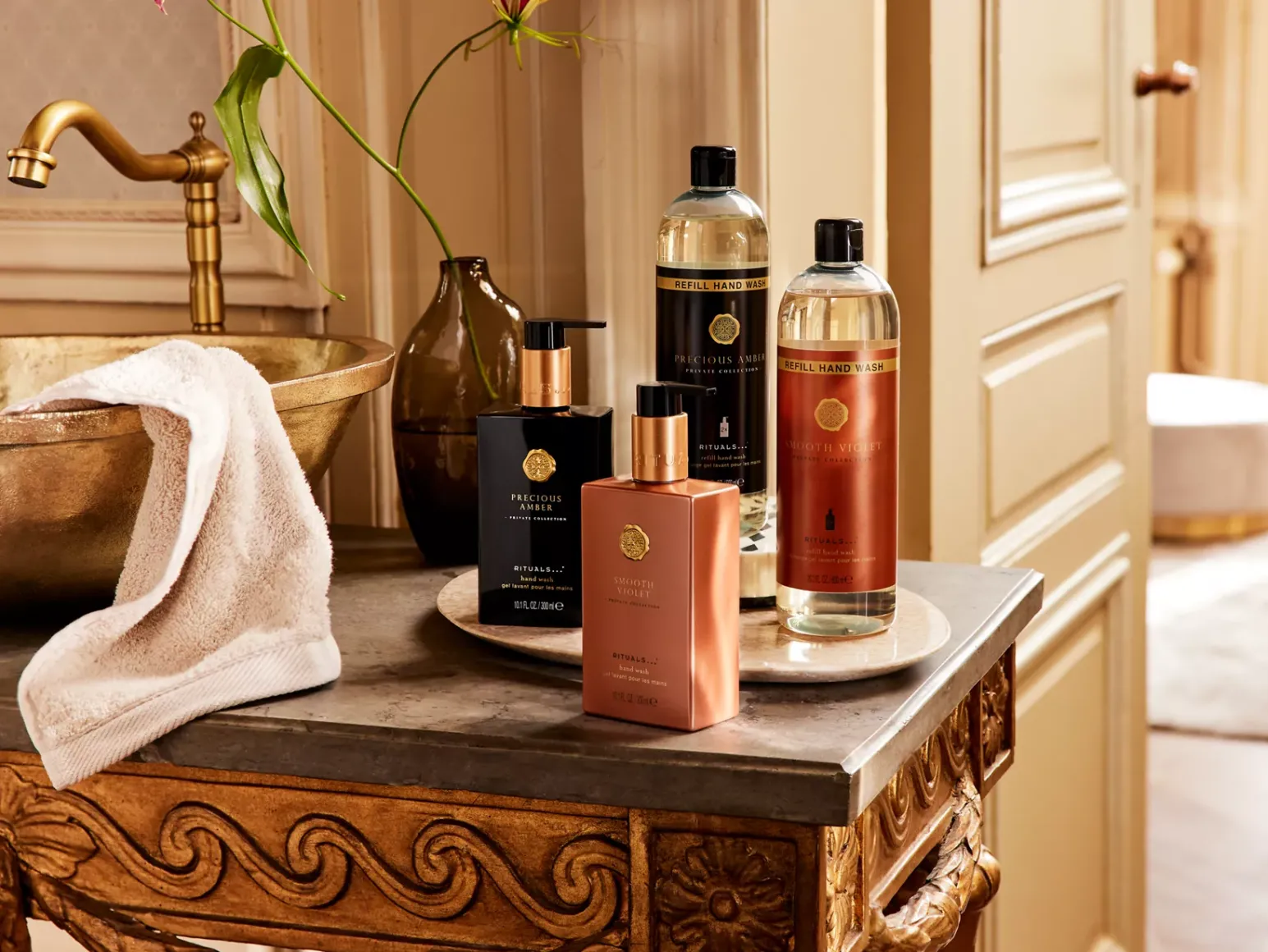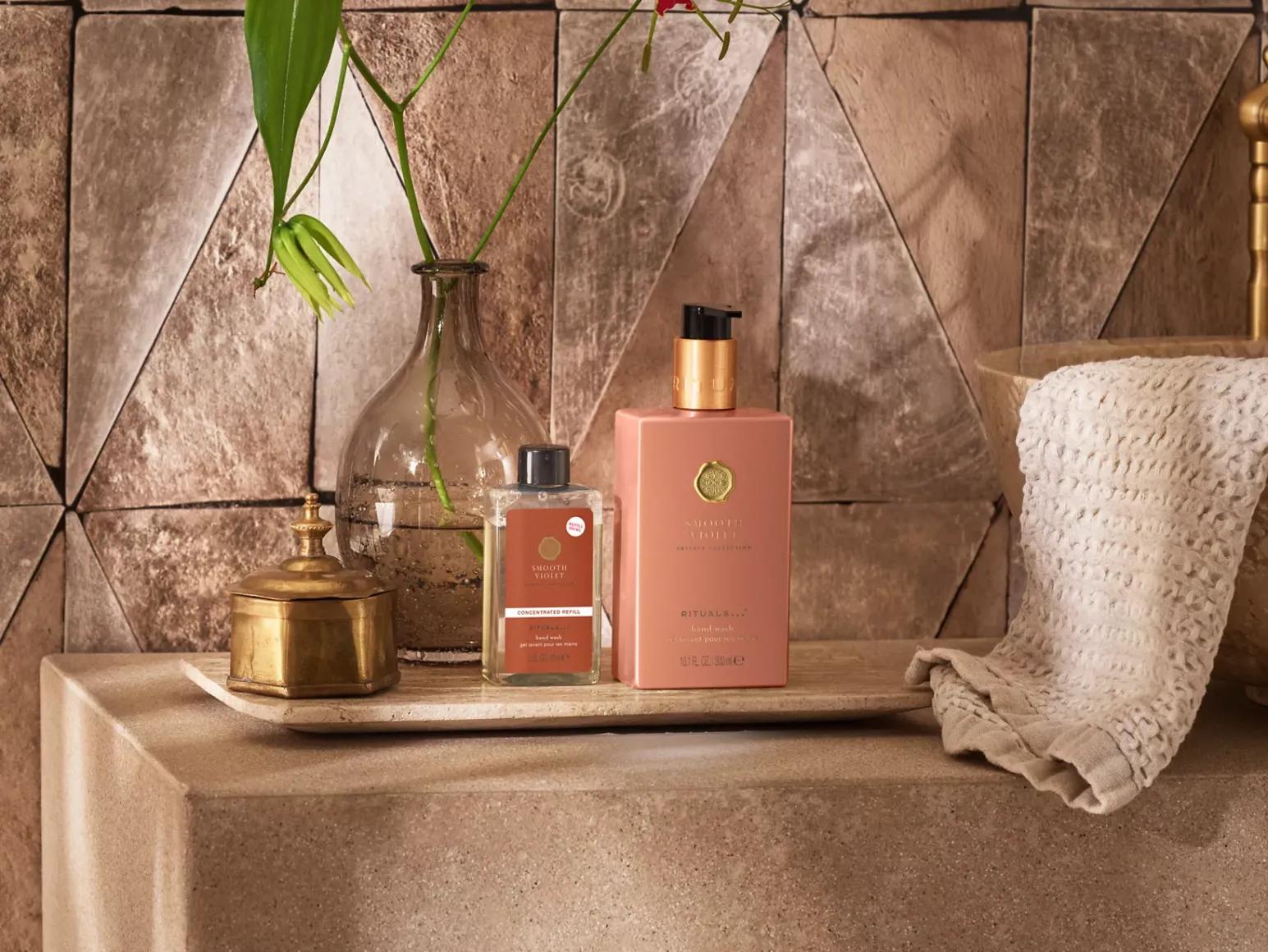 Disfruta de un maravilloso momento en el lavabo con este lujoso jabón líquido de manos con una cálida y reconfortante mezcla de rosa, violeta, sándalo y pachulí.