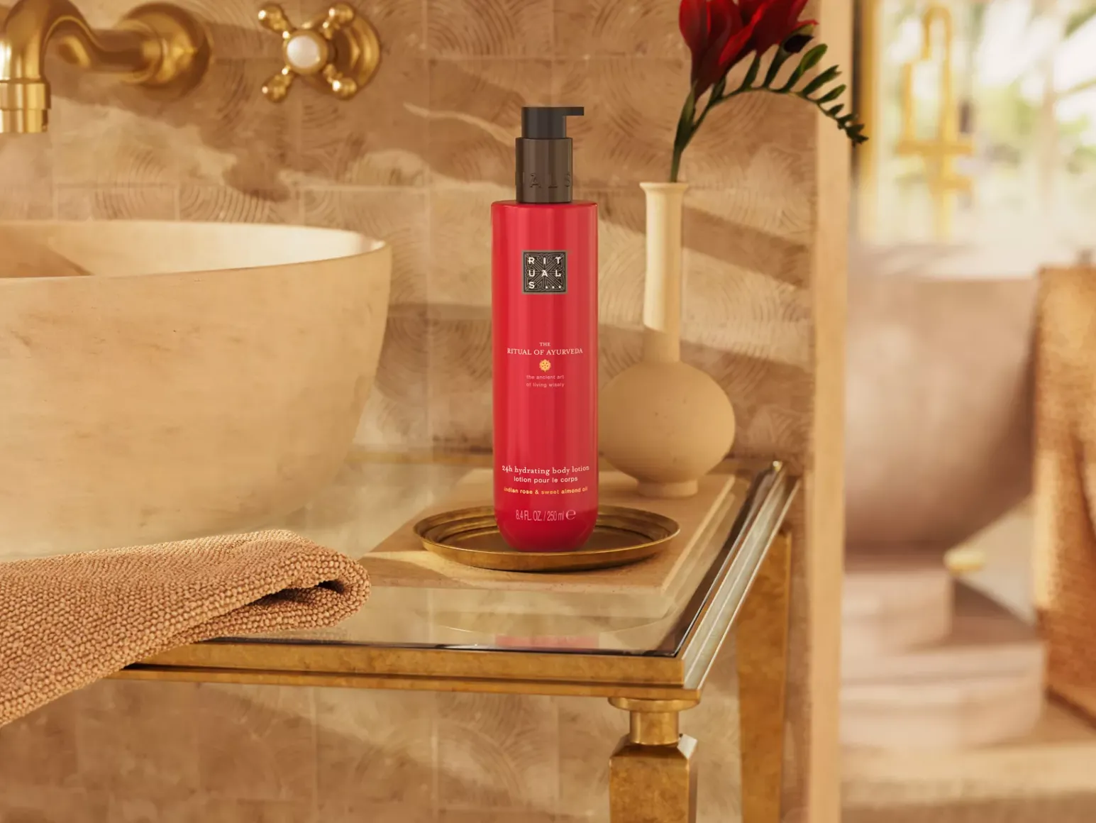 Mima tu piel con la fórmula en gel ultraligera de la loción corporal The Ritual of Ayurveda, con un 95 % de ingredientes de origen natural. Esta loción hidratante de 24 horas de duración se ha formulado pensando en tu comodidad, para absorberse rápidamente y no dejar una sensación pegajosa en la piel. No solo te deja la piel suave e hidratada, además puedes disfrutar del aroma dulce y almendrado de la rosa de la India y el aceite de almendra dulce mucho después de su aplicación. Potencia tu cuidado corporal usando primero la espuma de ducha y luego el exfoliante corporal. Después, aplica esta ligera loción y rocía un toque de bruma para el cuerpo y el cabello sobre la ropa antes de salir a la calle.