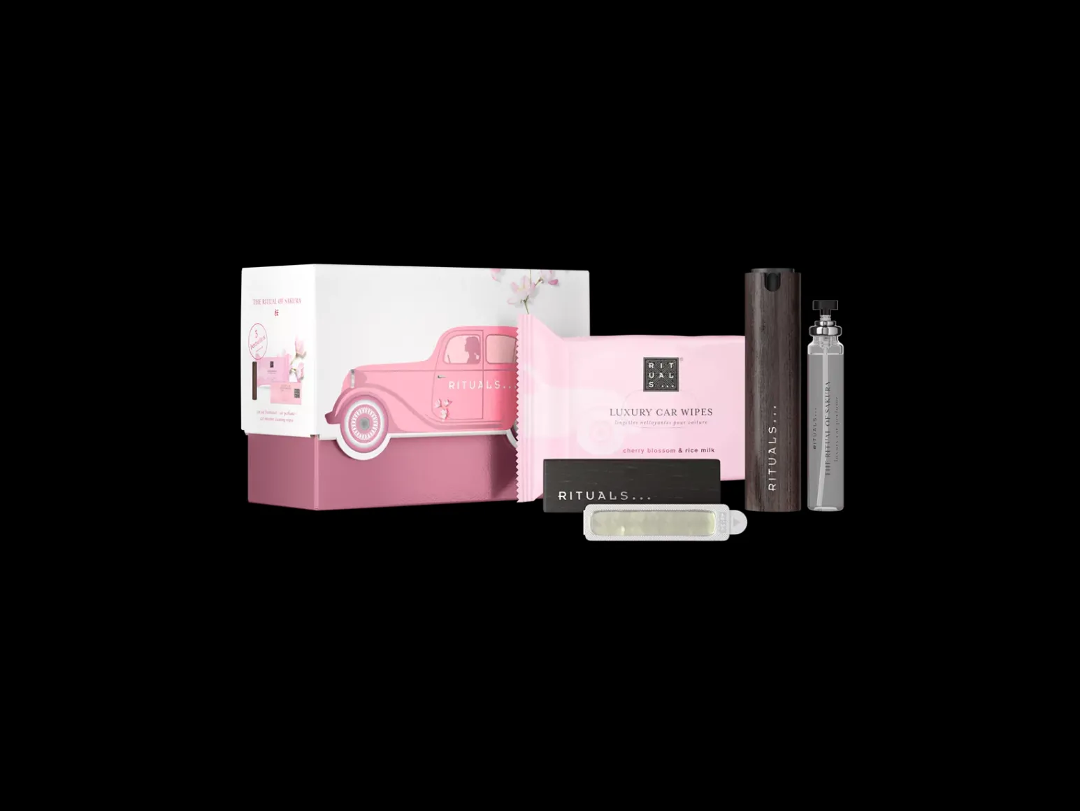 Disfruta aún más de tu tiempo en el coche con este precioso cofre de regalo lleno de accesorios lujosos y con el dulce aroma de la flor de cerezo.