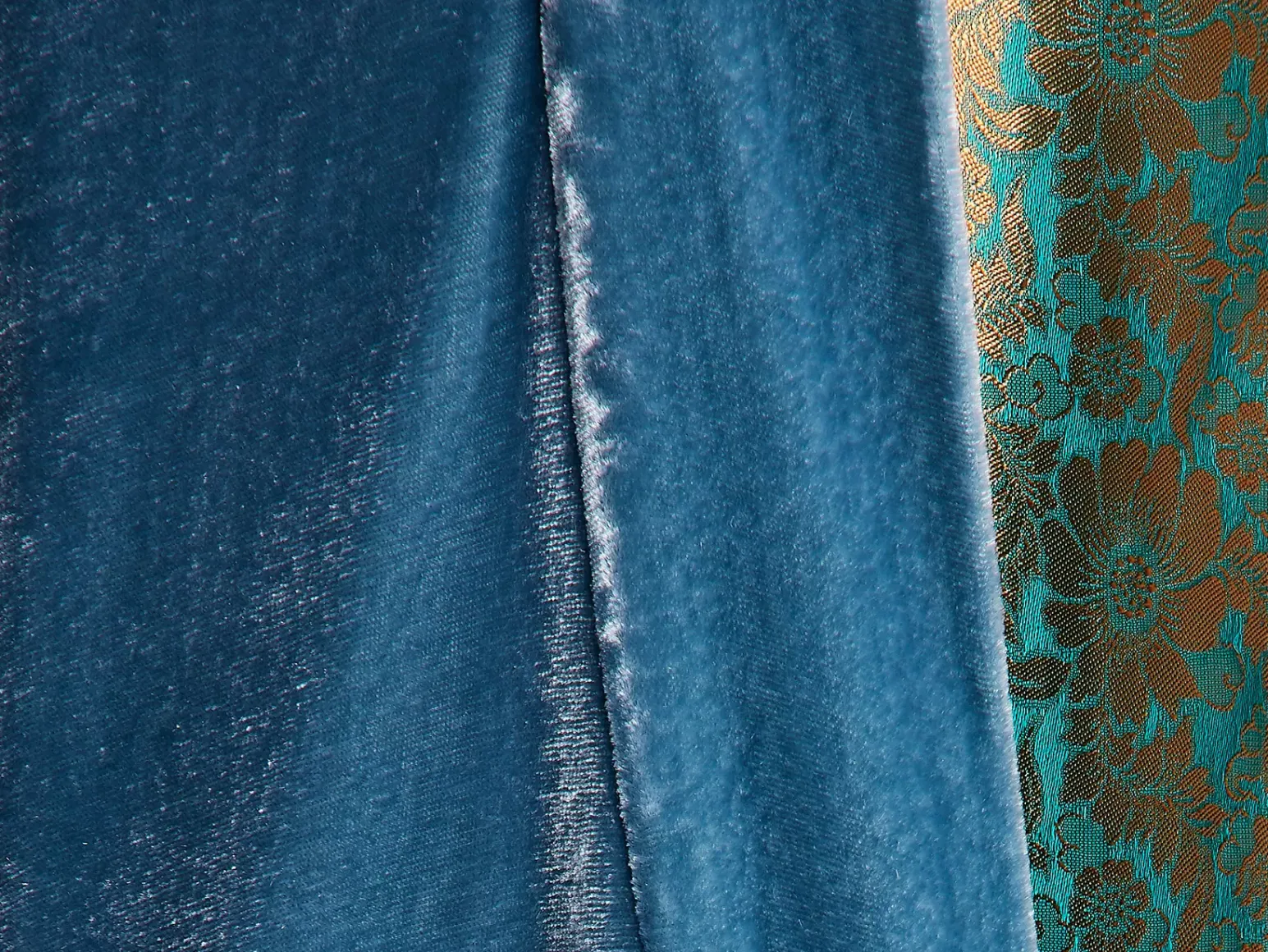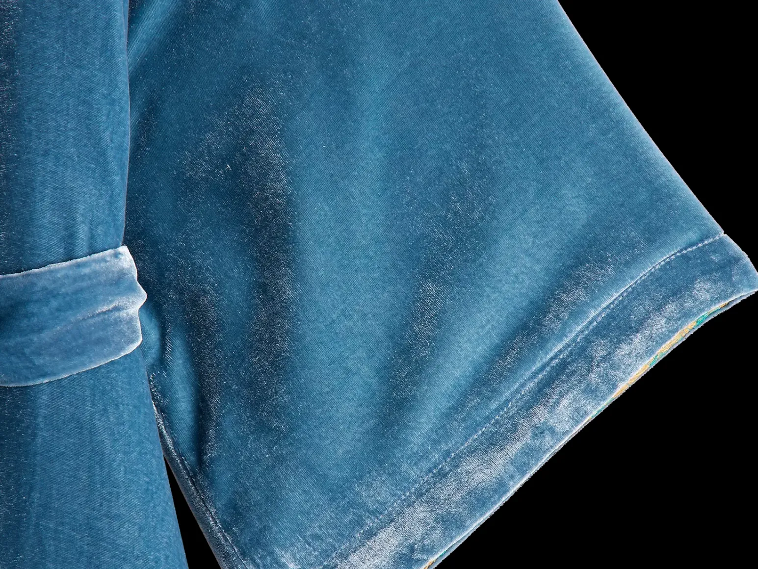 Envuélvete en el mejor lujo con nuestro elegante kimono de terciopelo de seda. Diseñado con un ajuste holgado, esta preciosa prenda puede ceñirse en la cintura o llevarse abierta sobre los hombros, dentro o fuera de casa, totalmente a tu gusto. Con terciopelo de viscosa y seda en el exterior y un forro de tejido jacquard, este maravilloso diseño te ofrecerá el toque elegante que buscabas. Este artículo ha sido tratado con un proceso especial que crea variaciones de sombreados y colores. Por ese motivo, los colores y las formas pueden variar ligeramente, lo que potencia la exclusividad y autenticidad del producto. Talla única.