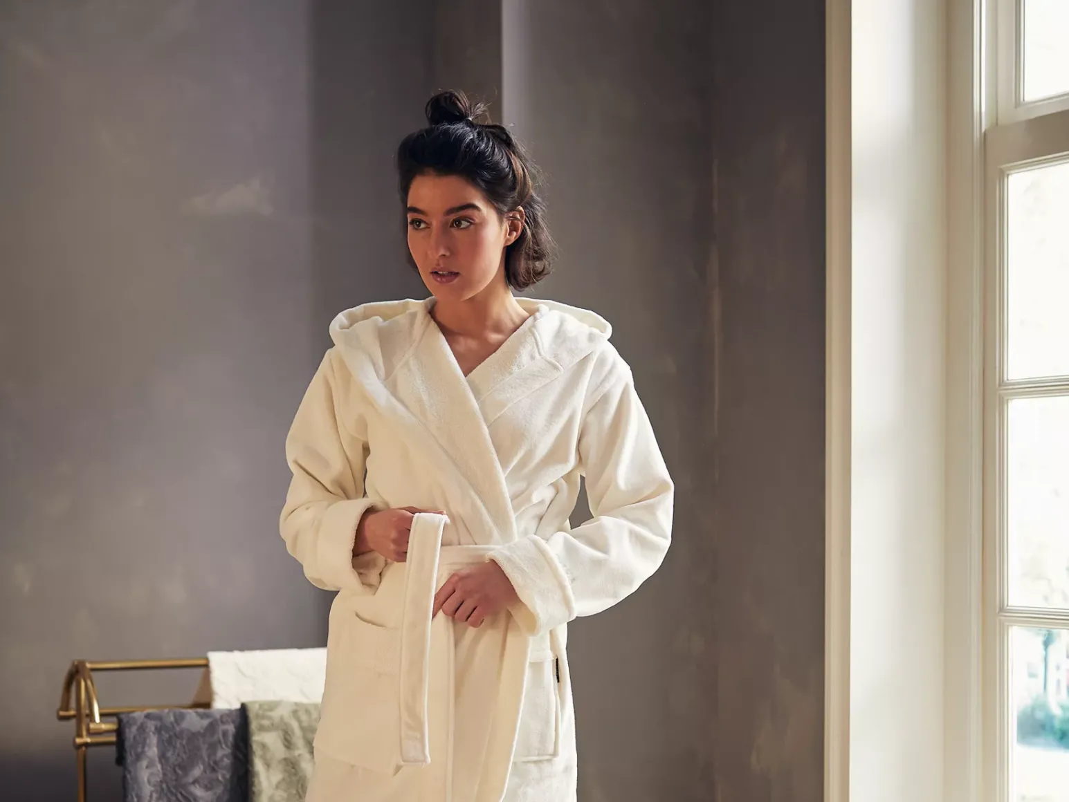 Disfruta de la comodidad de este lujoso albornoz para mujer de nuestra House of Rituals Collection, elaborado en suave y precioso algodón color blanco roto. Perfecto para después de darte un baño o para desconectar con estilo los fines de semana.