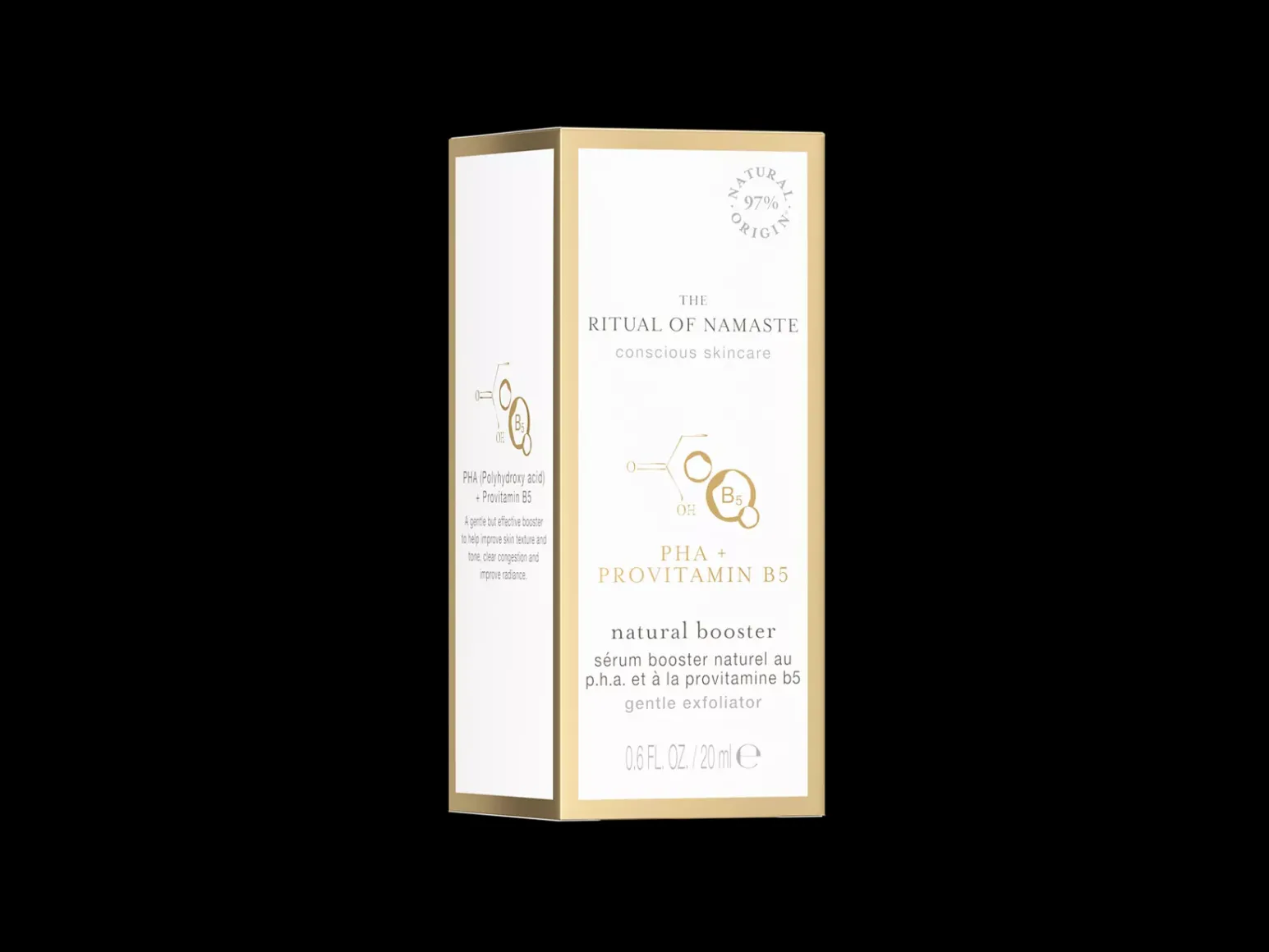 Descubre el poder transformador de nuestro suave y eficiente potenciador para perfeccionar la piel, con un 97 % de ingredientes de origen natural. Con PHA + Provitamina B5, no solo reduce la apariencia de los poros sino que también combate la piel apagada y seca para lograr un cutis más suave y perfecto. La Provitamina B5 retiene la hidratación, refuerza la barrera de la piel y la protege frente a la irritación, para que la piel quede hidratada, suave y elástica. Este potenciador también ofrece el suave poder exfoliante del PHA (polihidroxiácido), un arma secreta que potencia la renovación celular y el brillo de la piel.