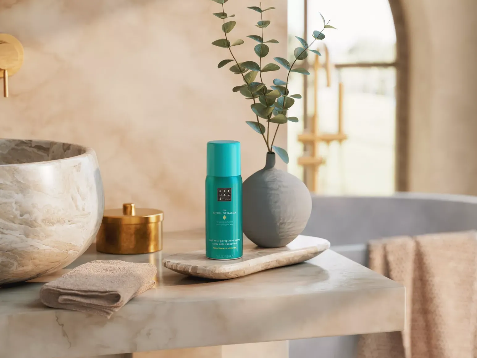 Mantén el frescor y la protección con tu fragancia favorita gracias al espray antitranspirante de The Ritual of Karma. Ofrece 24 horas de protección frente al sudor y el olor corporal. Este espray suave y calmante tiene ingredientes relajantes, como la flor de loto y el té blanco.