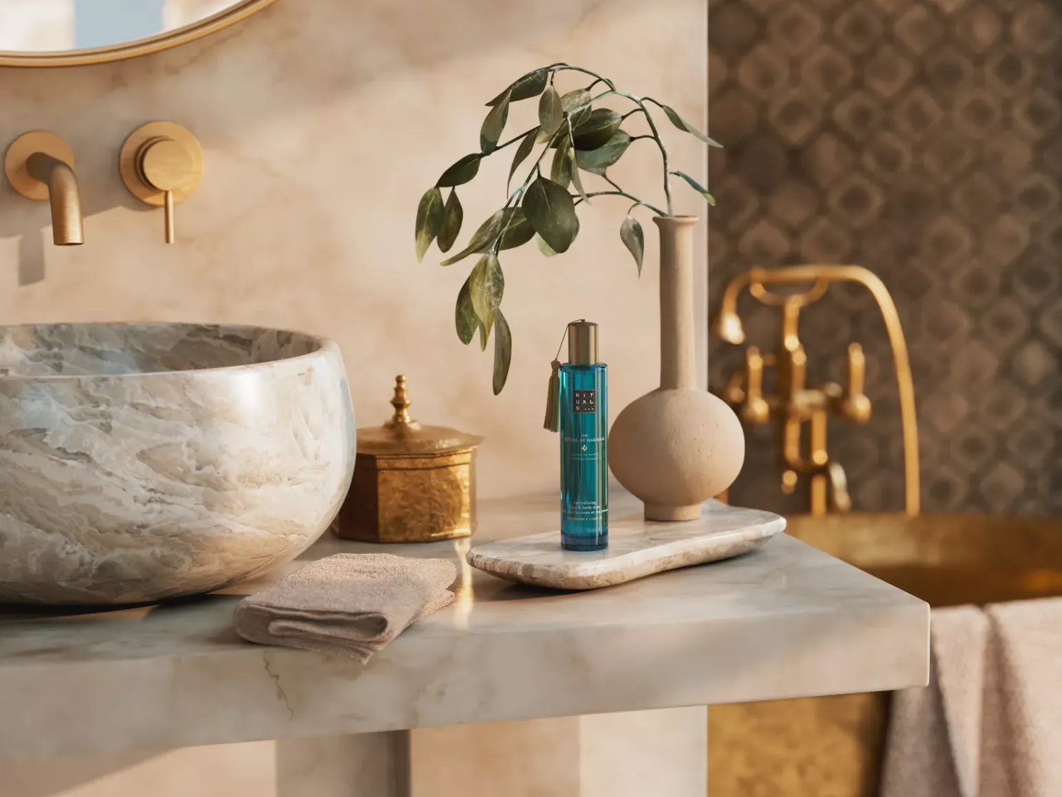 Disfruta de las ventajas de spa que ofrece una rutina hamán en cualquier momento y lugar con nuestra bruma corporal The Ritual of Hammam. Con un 92 % de ingredientes de origen natural, como el aceite de argán y el eucalipto aromático, esta bruma es una manera estupenda de prolongar la experiencia del hamán más allá de la ducha. Completa esta ceremonia de limpieza refrescante con el resto de productos de la misma gama. La fragancia se abre con un toque alegre y revitalizante de menta y bergamota y se complementa con notas herbáceas y aromáticas, llenas de serenidad. El corazón del aroma son los toques florales y acuosos, acompañados de las notas frescas del aloe vera, que crean una experiencia natural y relajante. Con almizcle blanco y sándalo como cierre, esta fragancia envuelve tus sentidos en una sensación cálida y reconfortante.