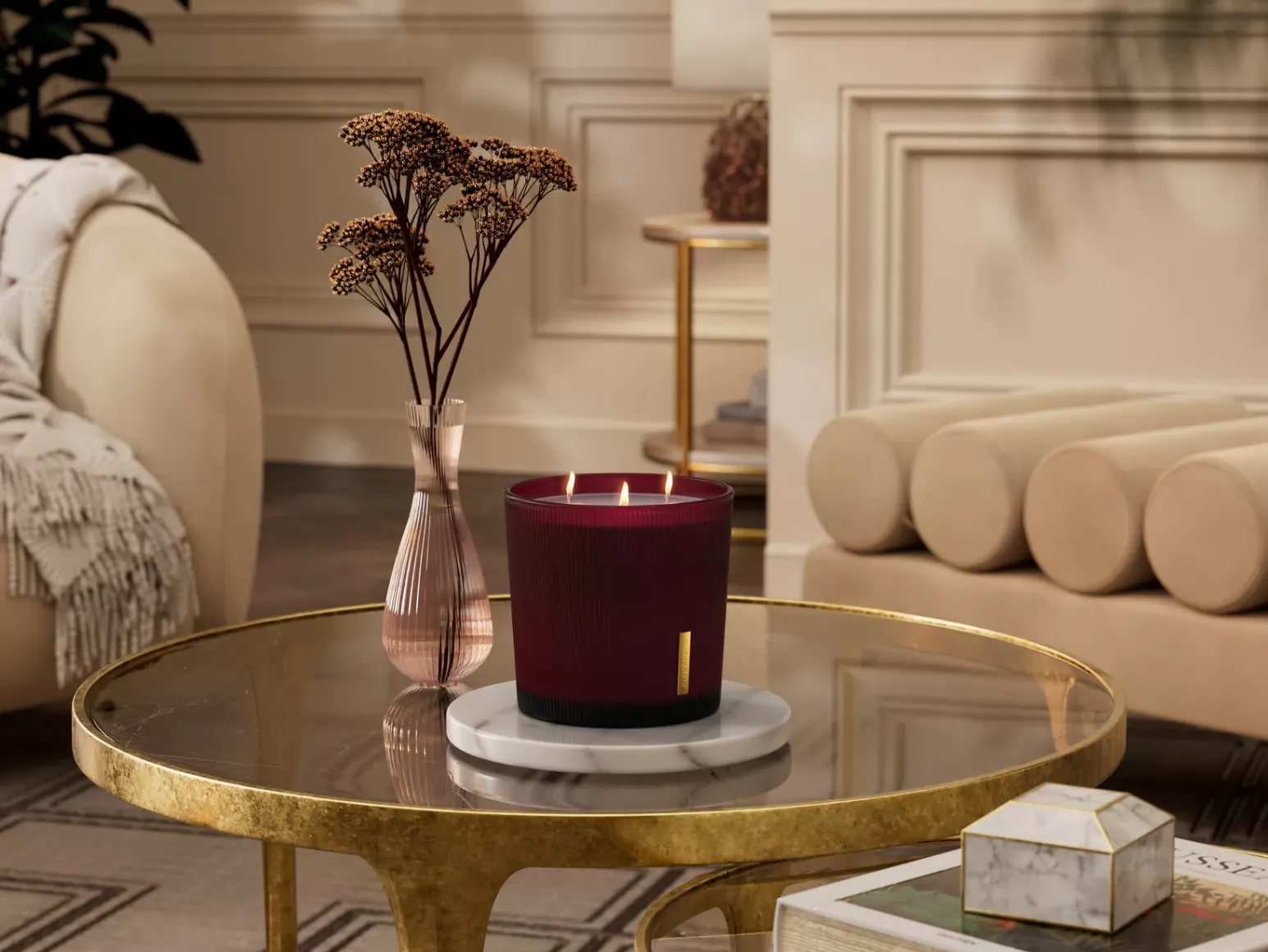 Recupera el equilibrio en mente, cuerpo y alma con nuestra elegante vela. Relájate al inspirar la mezcla de rosa de la India, ciruela y especias exóticas.