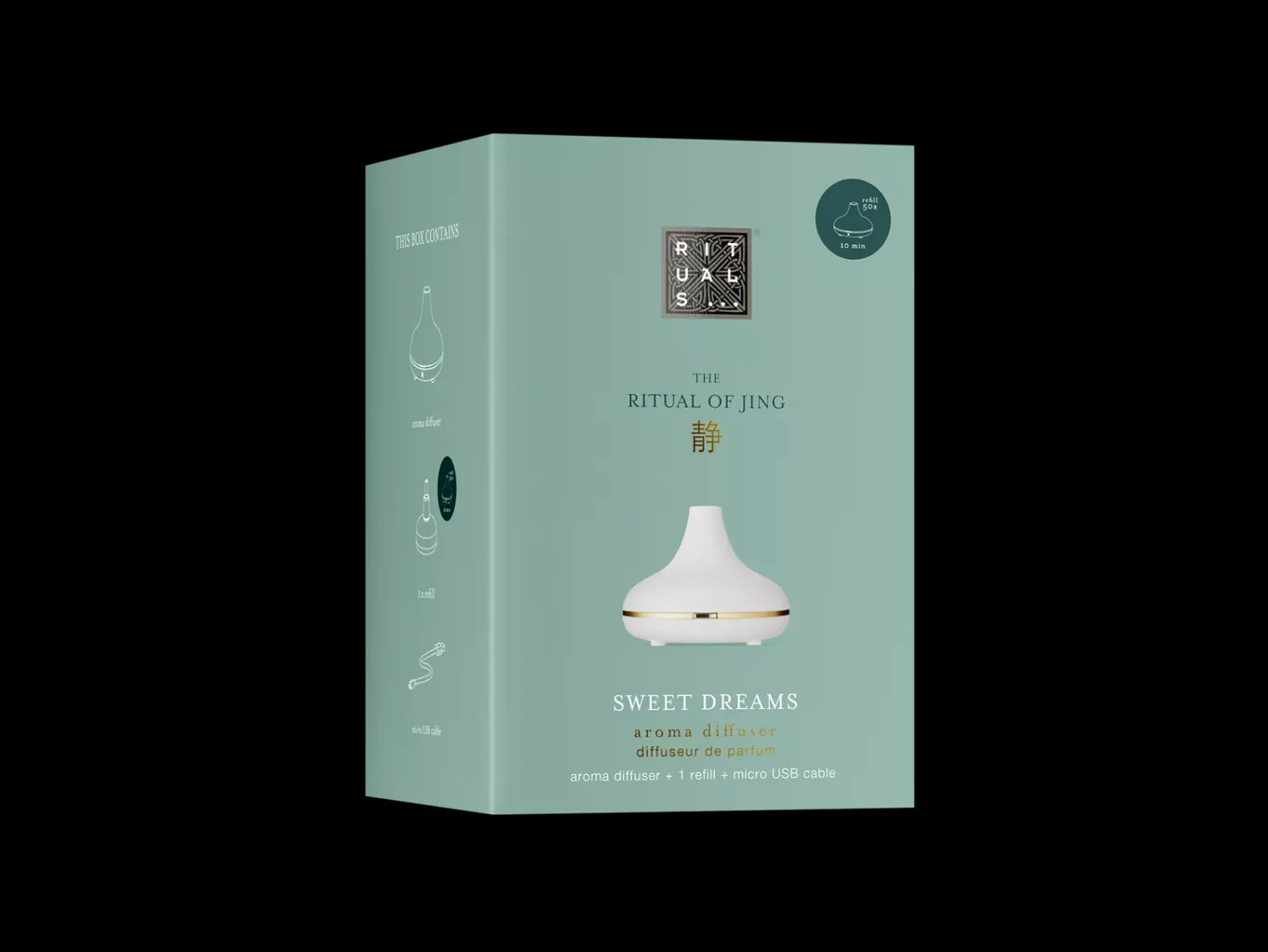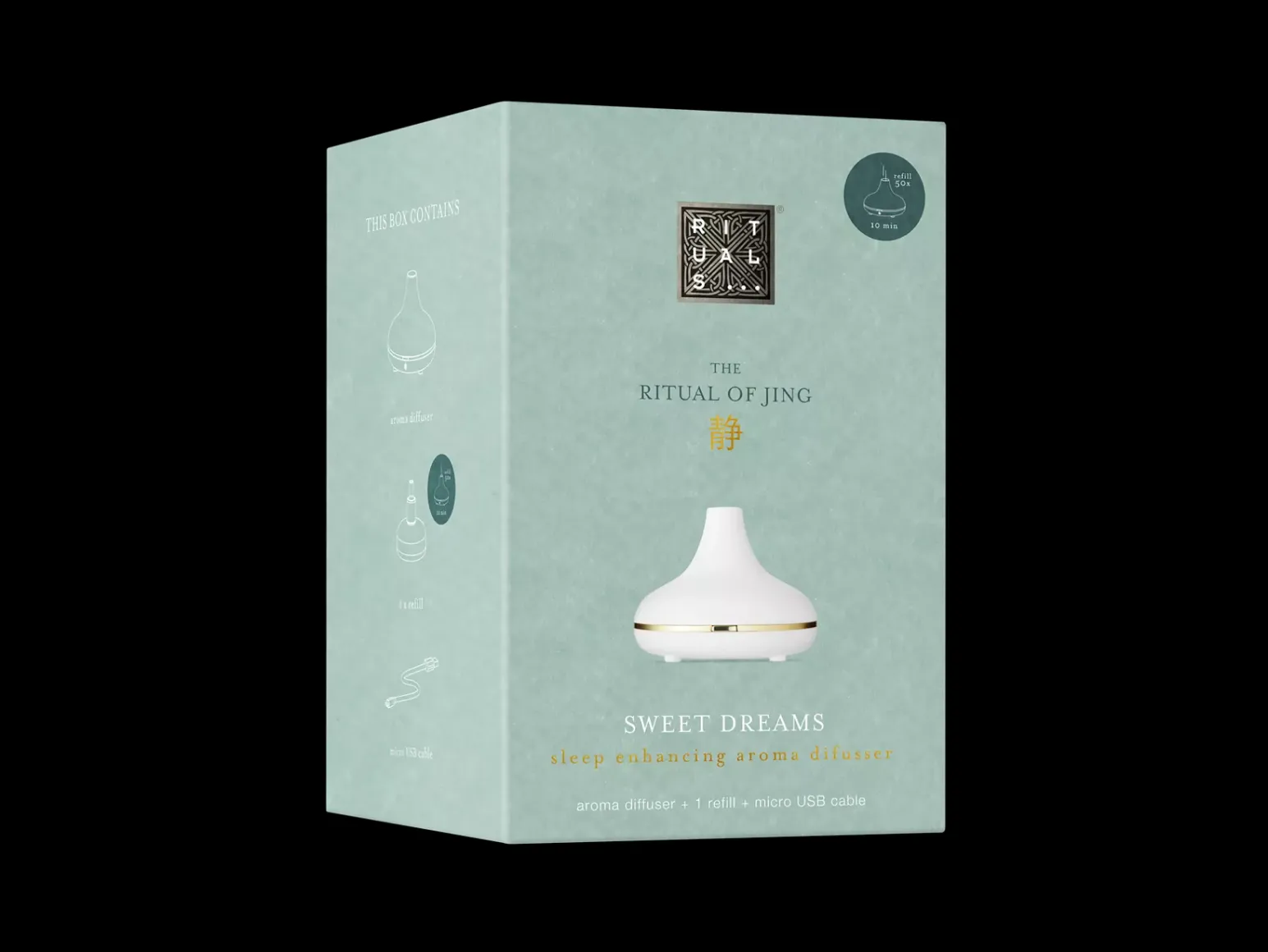 Duerme mejor con nuestro innovador difusor The Ritual of Jing. Relaja los sentidos y desconecta gracias a la suave mezcla de lavanda y sándalo.