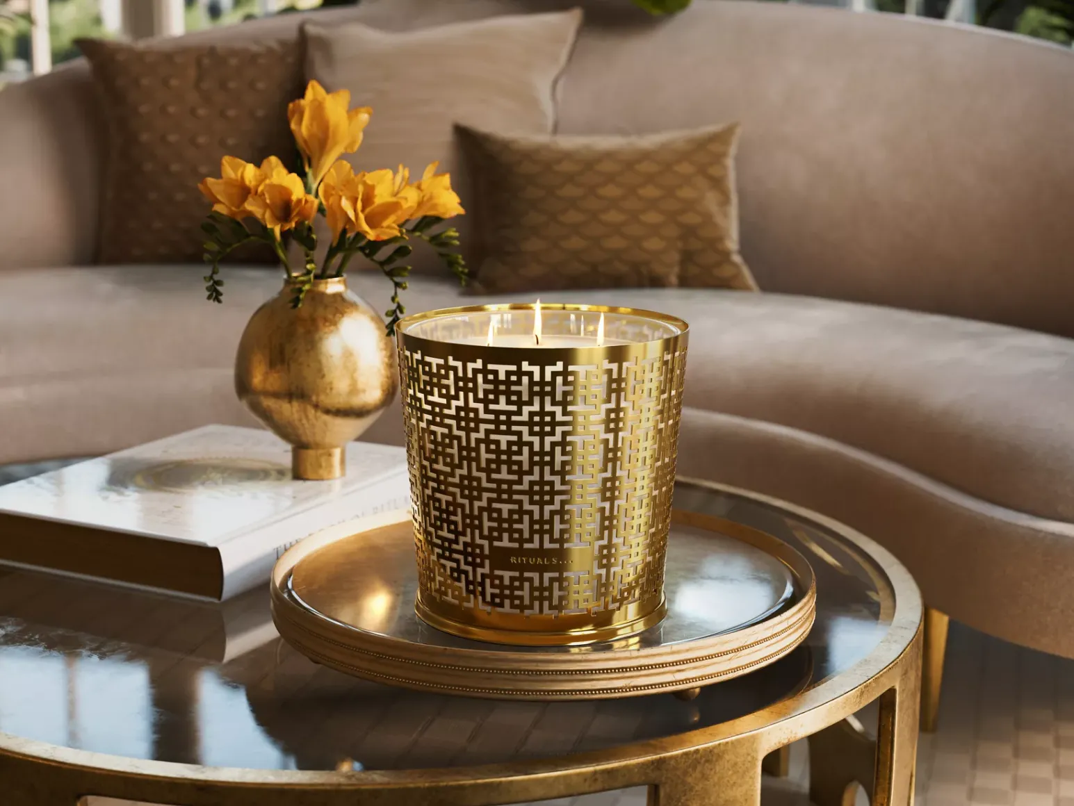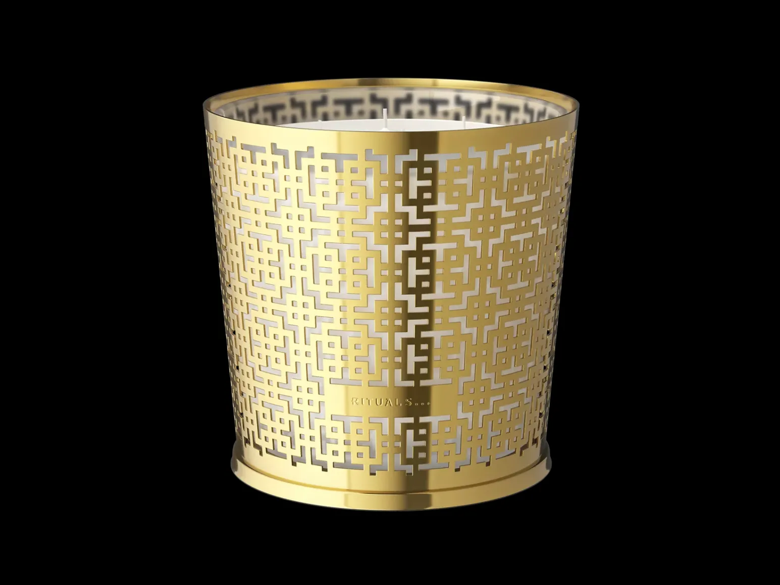 Calma tus sentidos con una mezcla aromática de notas cálidas y amaderadas y el toque intenso del pachulí y las especias, gracias a la vela aromática Black Oudh con un portavelas en metal dorado.