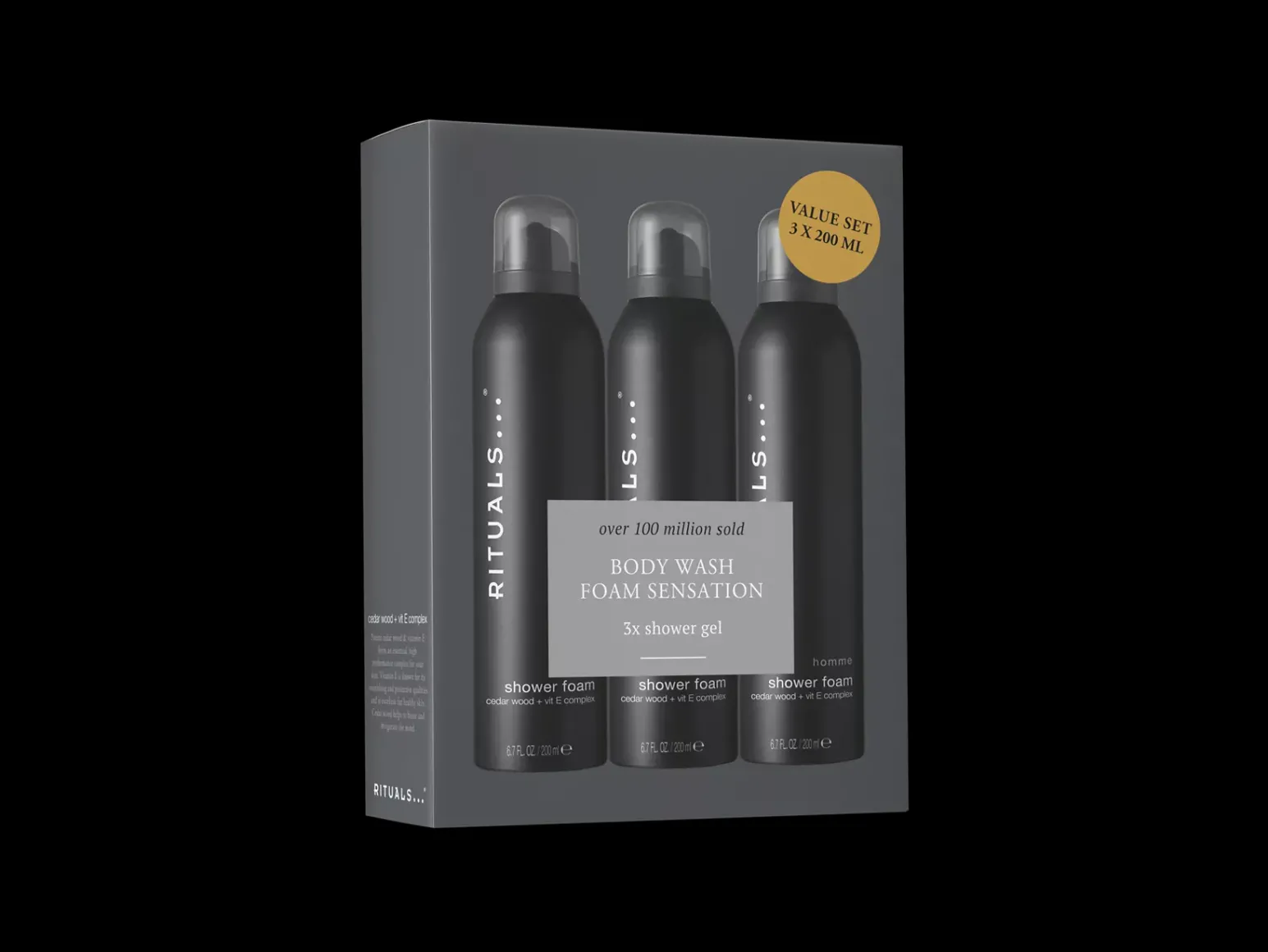 El mejor regalo para ti o para quien tú quieras, este maravilloso cofre de regalo contiene tres espumas de ducha de tamaño estándar. El gel Homme es una potente espuma de ducha que elimina la contaminación y suciedad de la piel. La fórmula contiene un complejo de madera de cedro revitalizante y vitamina E que mejora la calidad de la piel con un extra reafirmante y rejuvenecedor. ¿El resultado? Una piel sana y radiante, con un tacto supersuave.