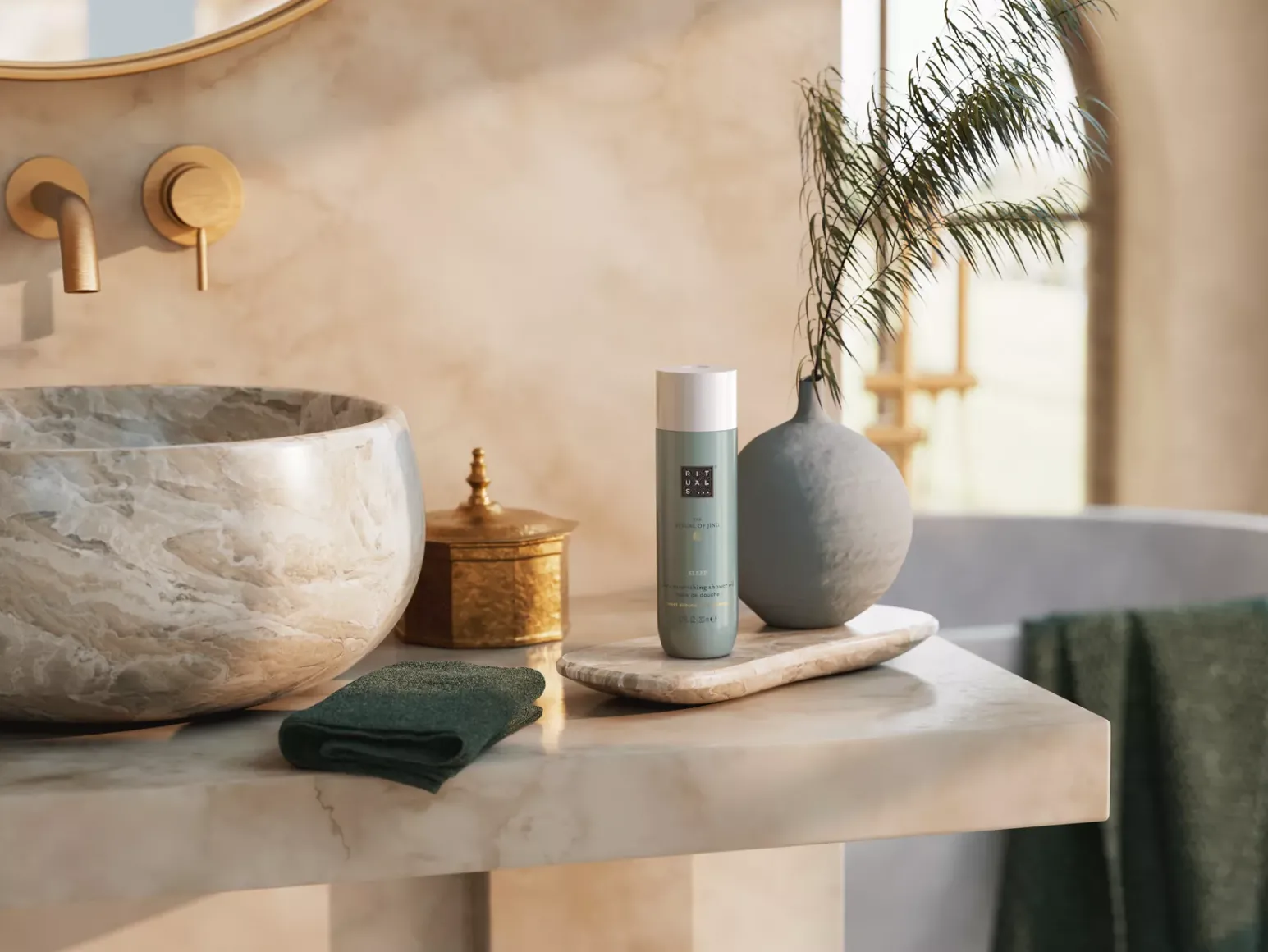 Aceite de ducha 2 en 1 The Ritual of Jing, limpiador y nutritivo. Con aceite de almendra dulce, ácidos grasos no saturados y el aroma delicado y dulce de la lavanda.